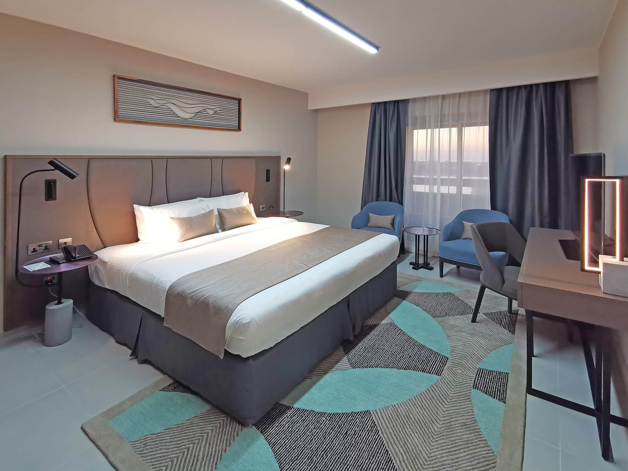 A perfect blend of Arabian hospitality, comfort, and luxury. Overlooking Sharjah’s beautiful Khalid Lagoon and Al Majaz Water Front, the hotel is conveniently located just 20 minutes from both Sharjah and Dubai airports and less than 5 minutes away from the nearby Sharjah Souk and shopping malls.